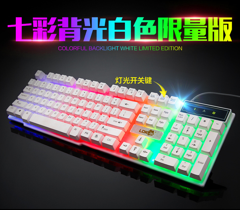 雷迪凯R260七彩背光键盘游戏键盘发光usb有线游戏键盘