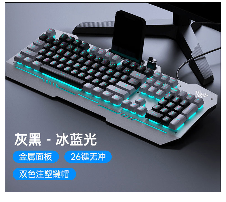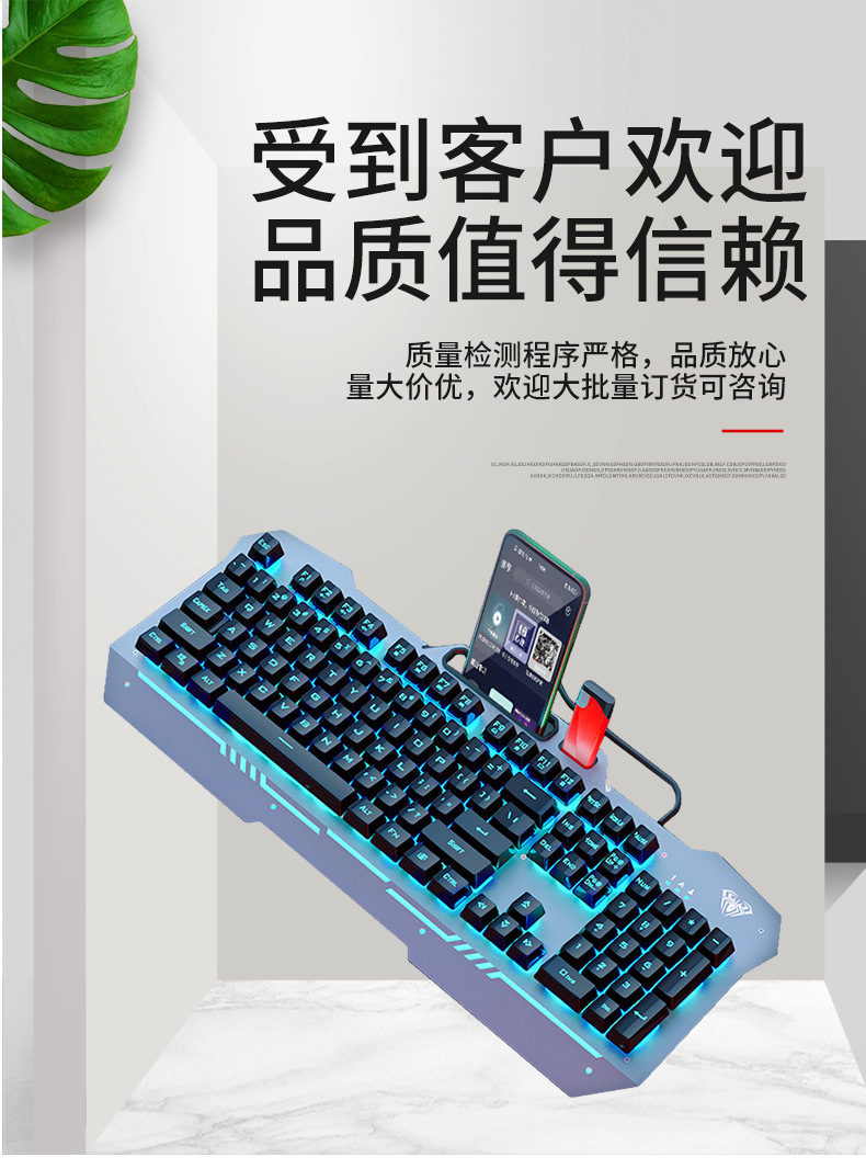 银雕K500游戏有线键盘拼色发光机械手感台式电脑配件跨境私模批发