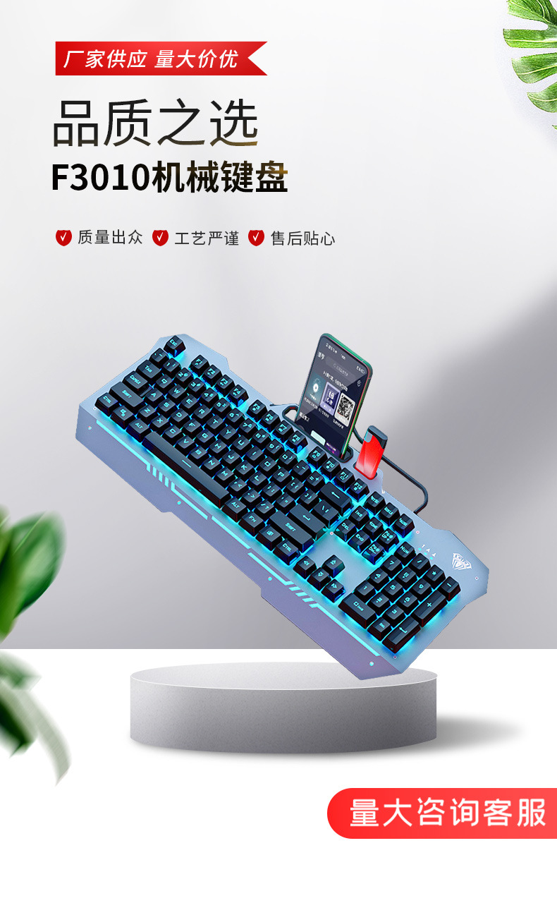 AULA/狼蛛F3010机械手感键盘有线电竞游戏键鼠耳机套装二件三件套