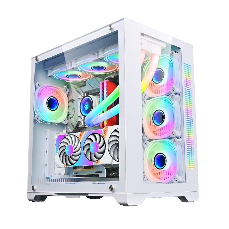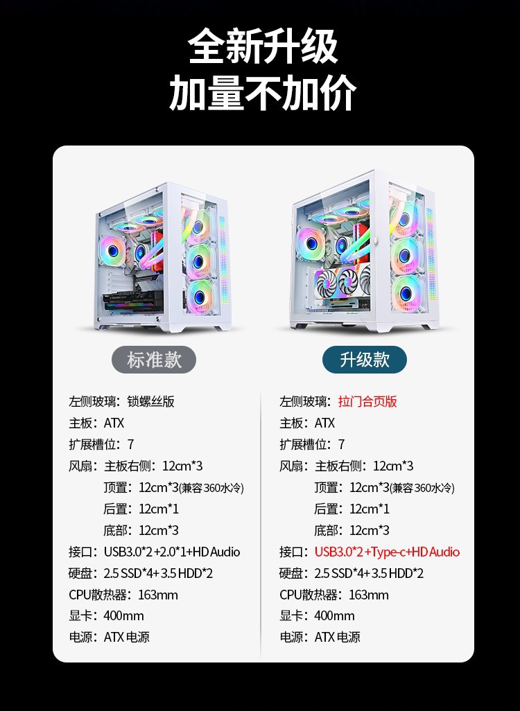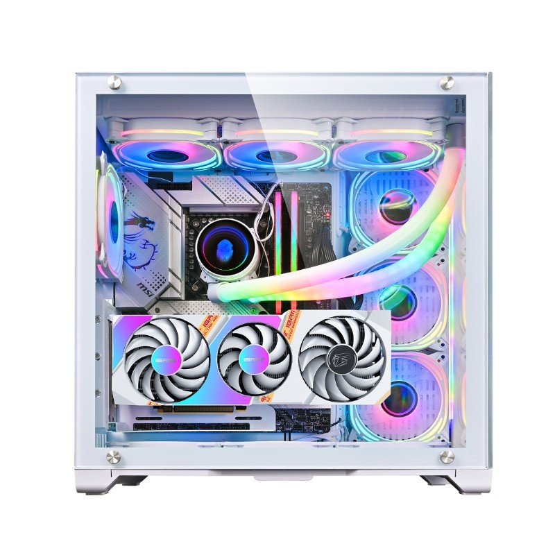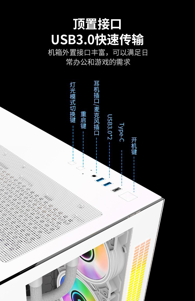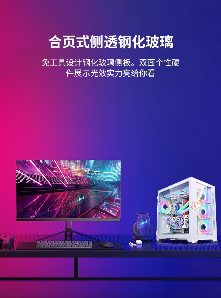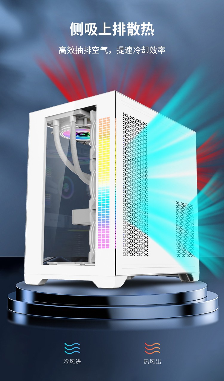 金河田RTX27 游戏电脑海景房白色小机箱无立柱侧透玻璃台式机箱