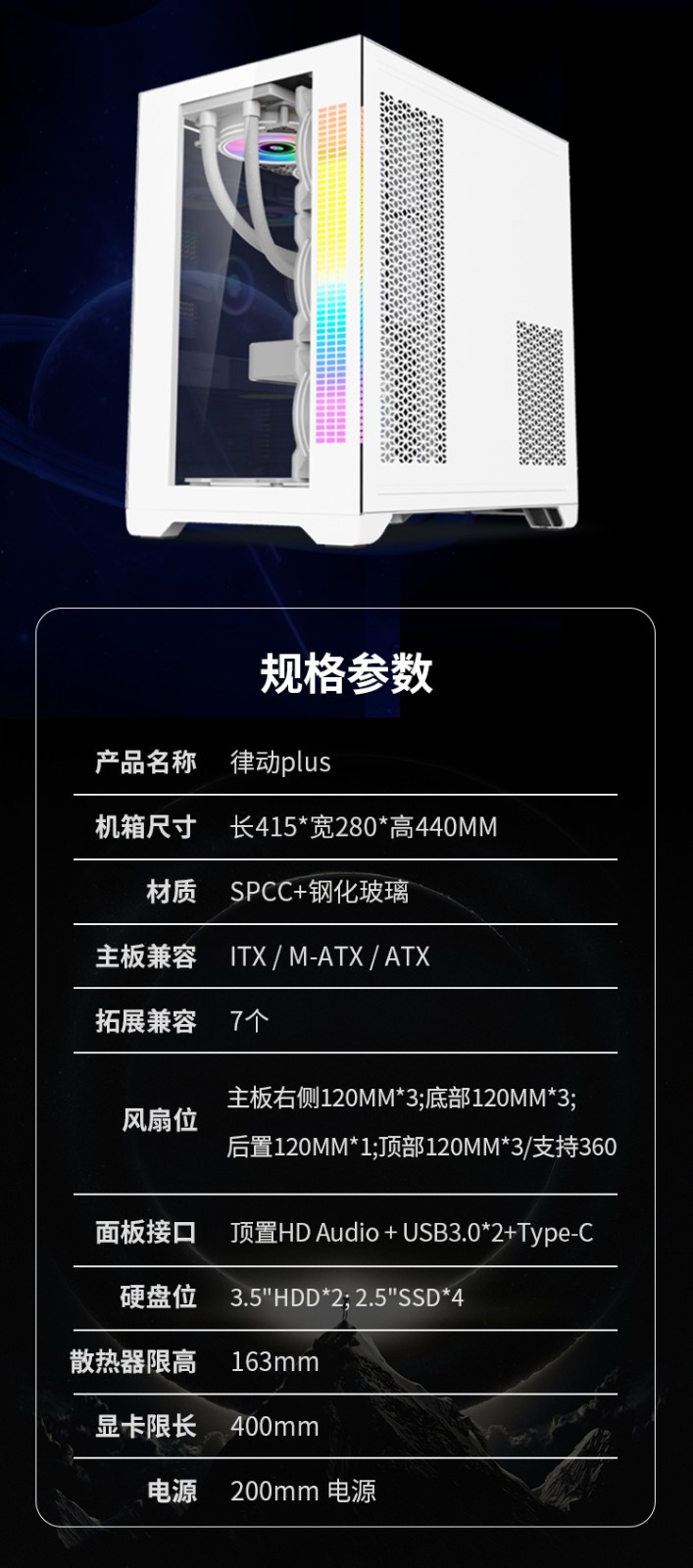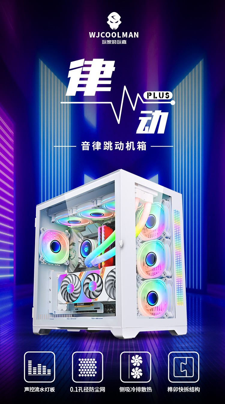 玩嘉 律动PLUS雪白电脑机箱台式机EATX主板360水冷玻璃侧透海景房
