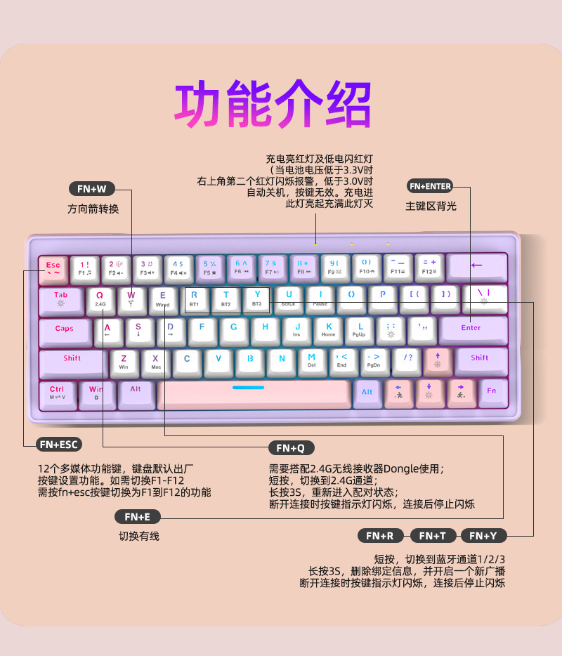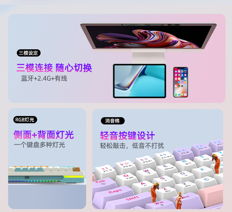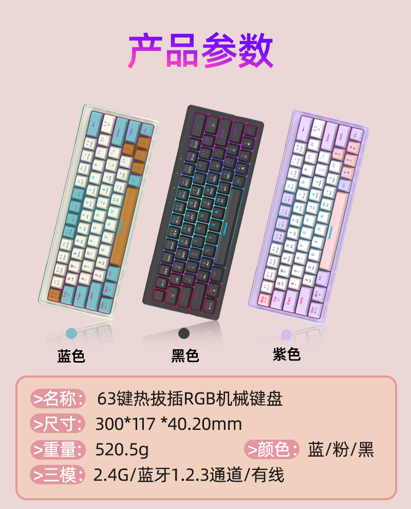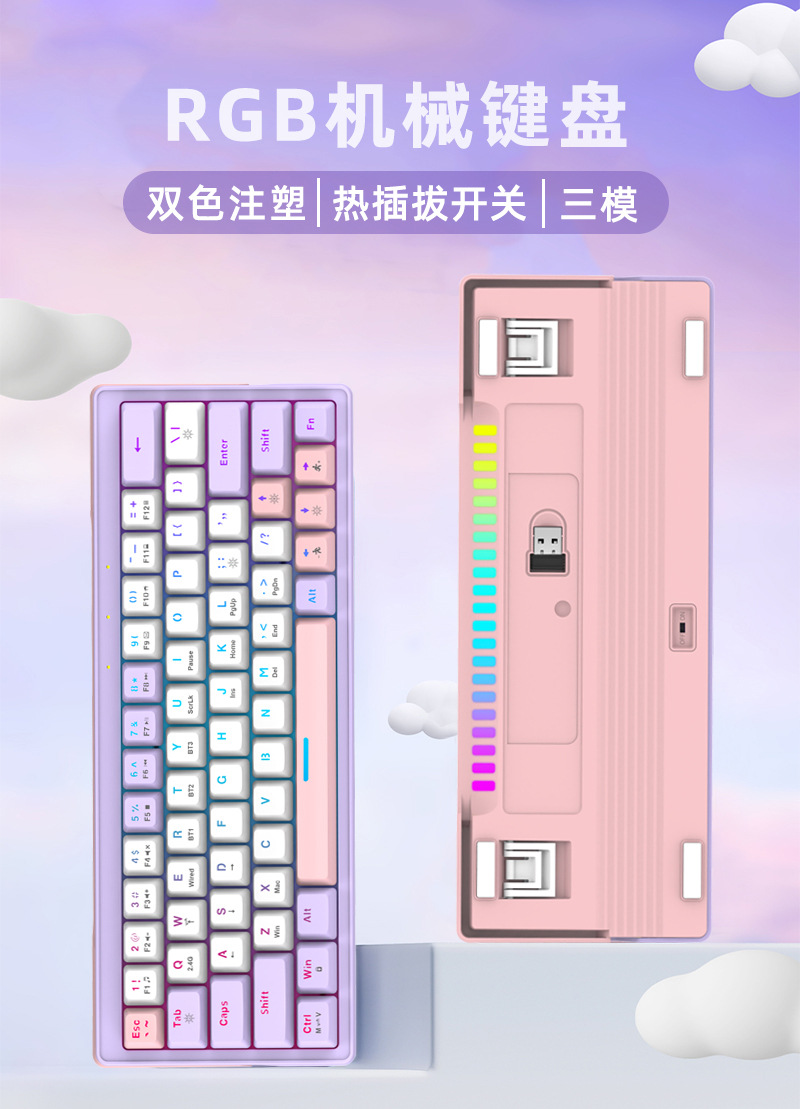 鹏柏61客制化机械键盘有线无线蓝牙三模机械键盘RGB发光全键无冲