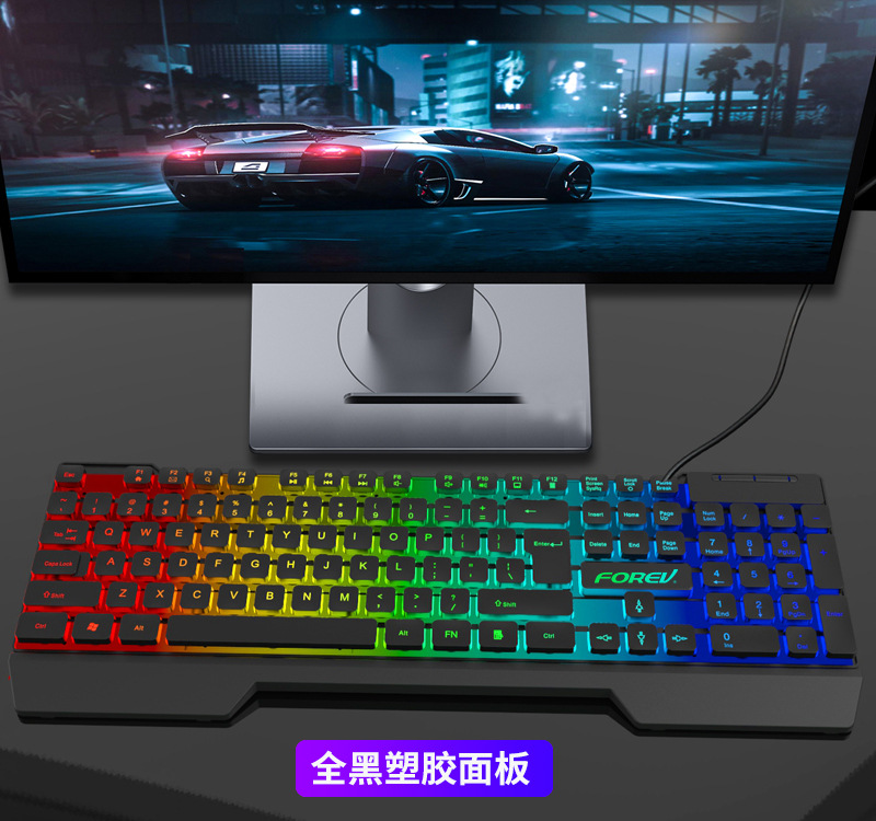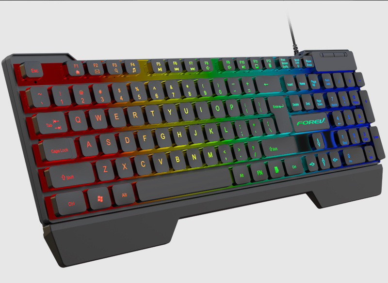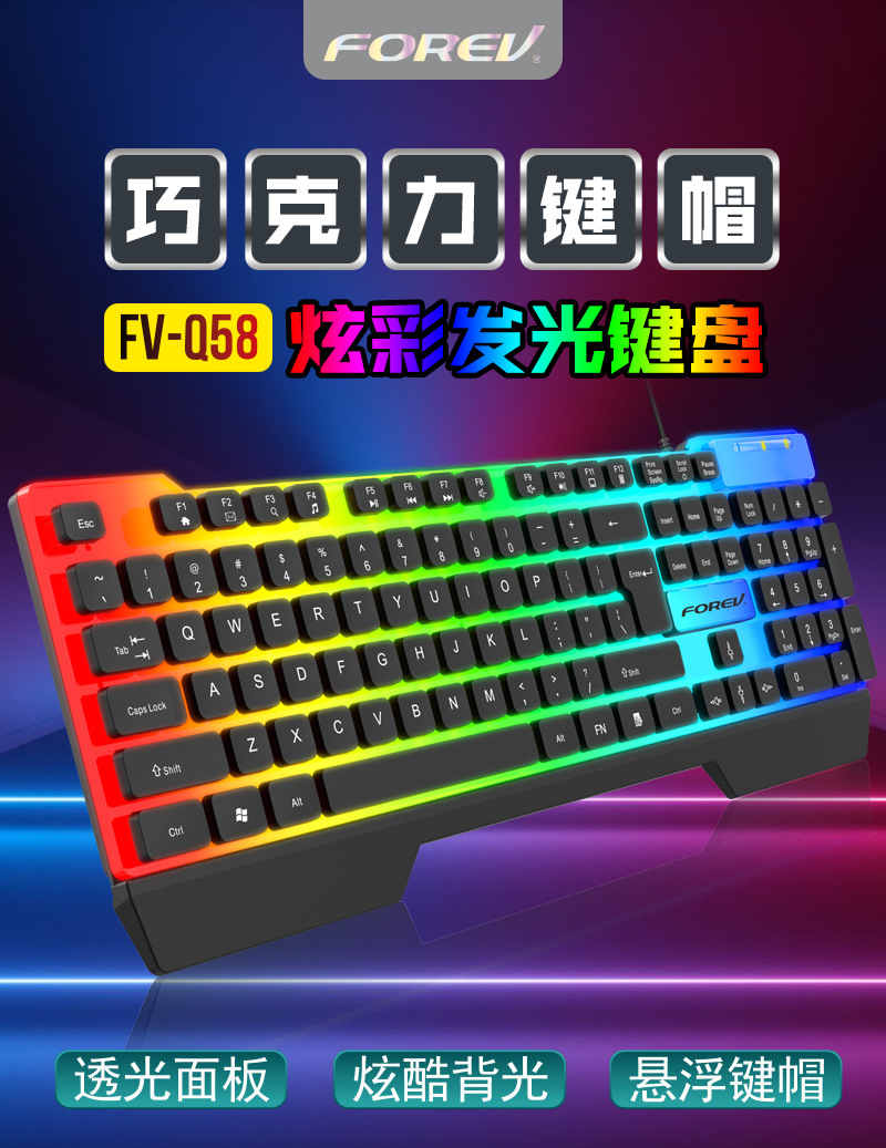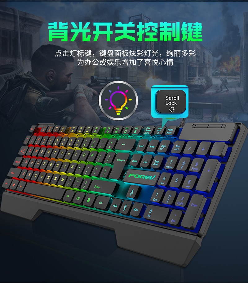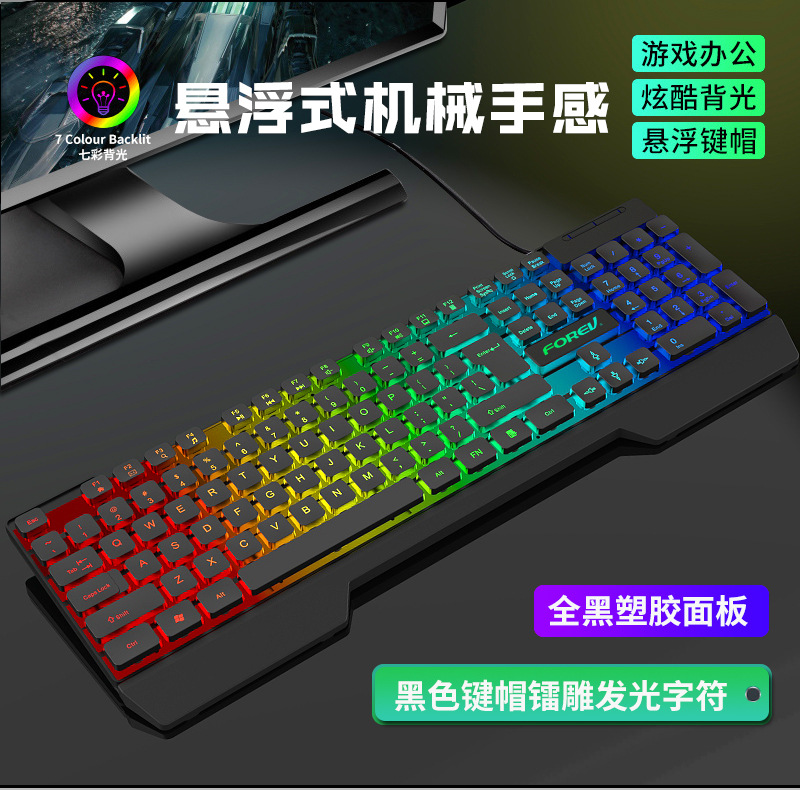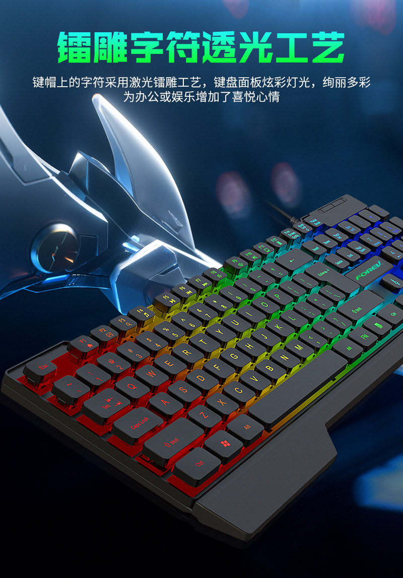 104键发光游戏键盘FVQ1S电竞游戏炫彩光薄膜有线机械手感键盘批发