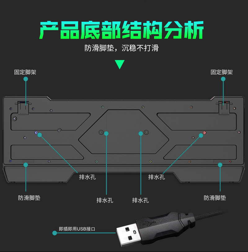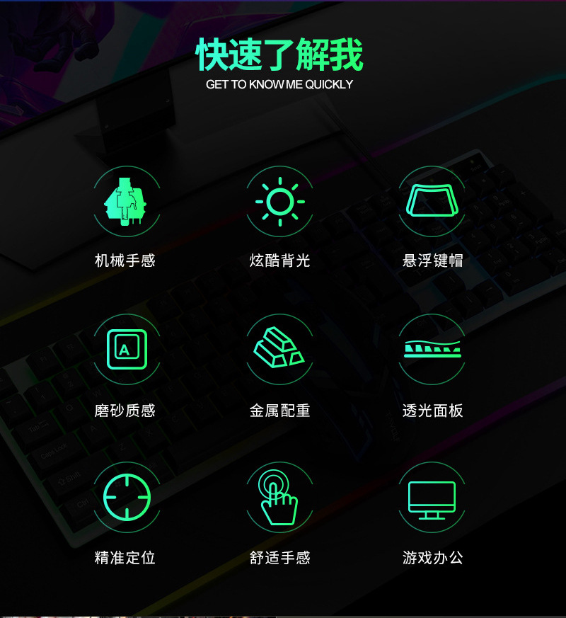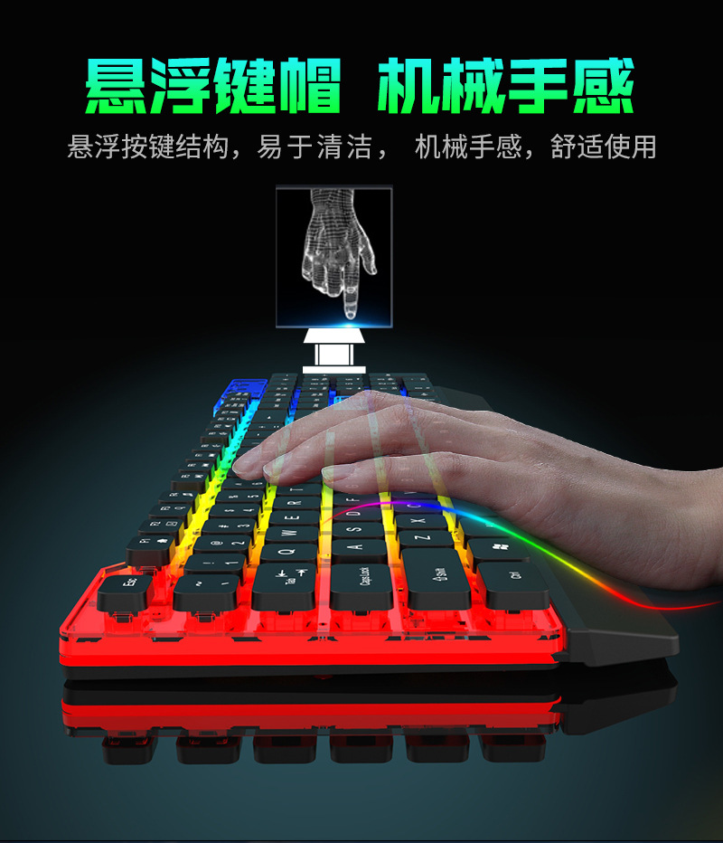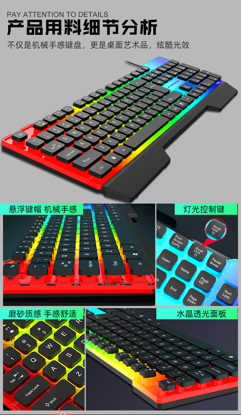 英菲克K9有线键盘电竞游戏发光机械手感办公机甲USB笔记