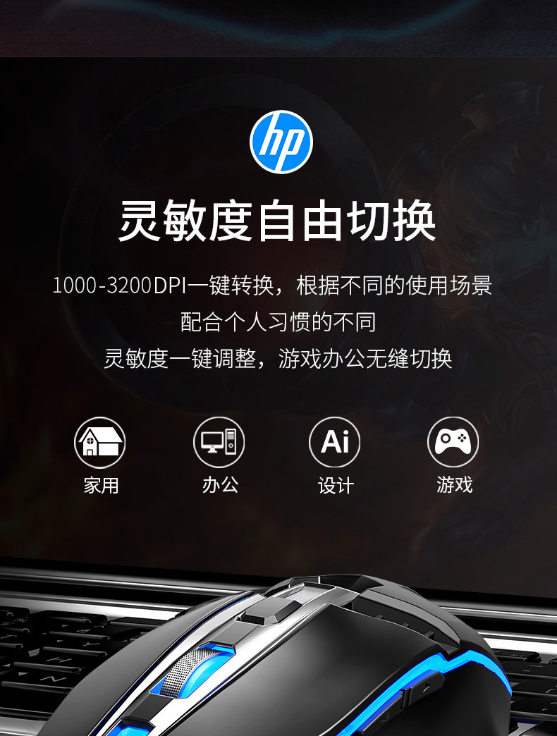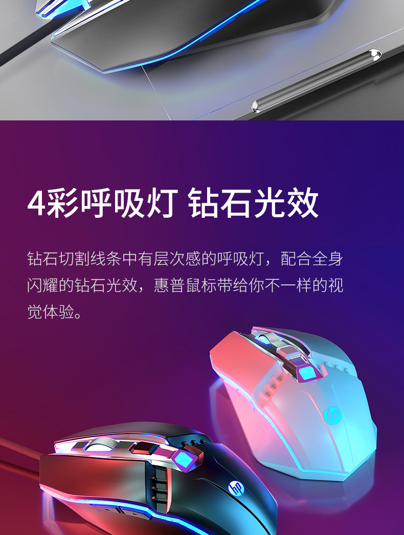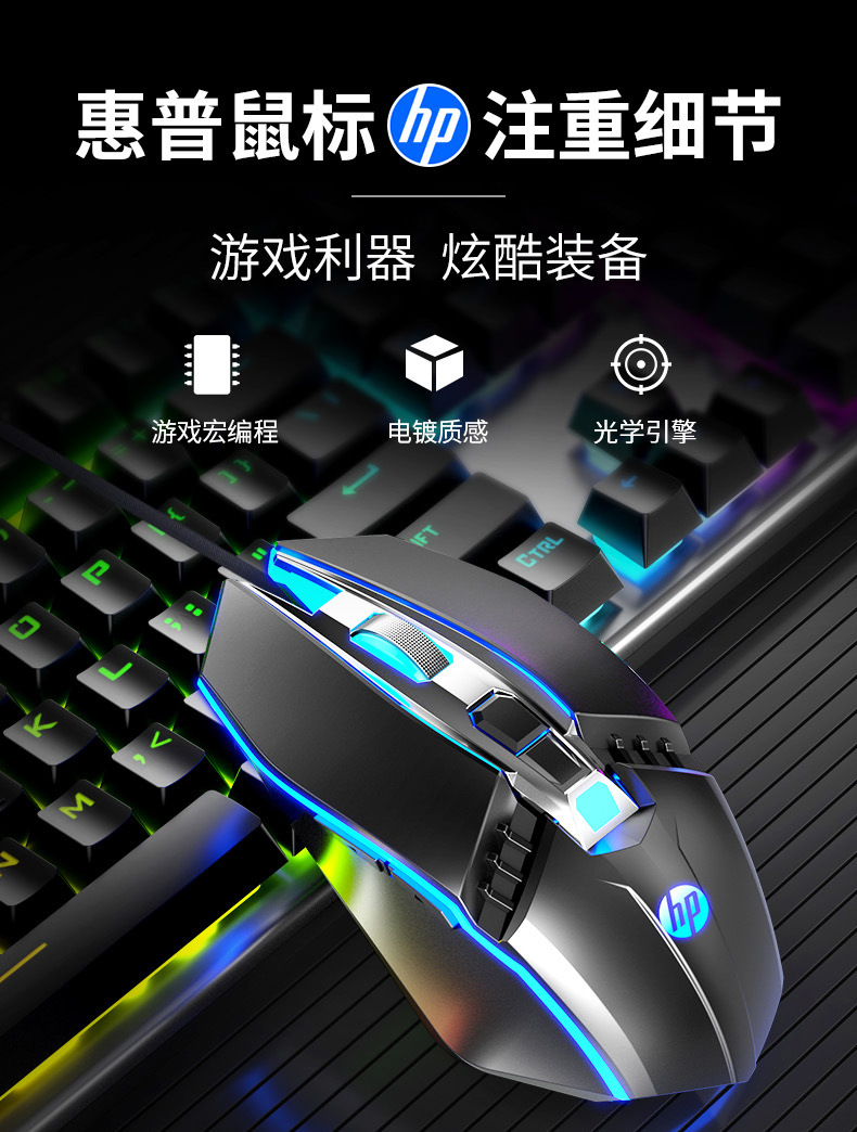 惠普M270有线机械电竞鼠标游戏办公通用四挡调节宏编程鼠标批发