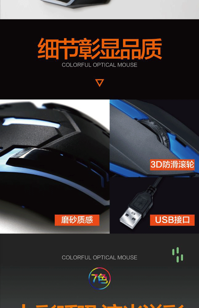 有线电竞游戏鼠标轻量化机甲七彩发光鼠标电脑外设现货礼品特价