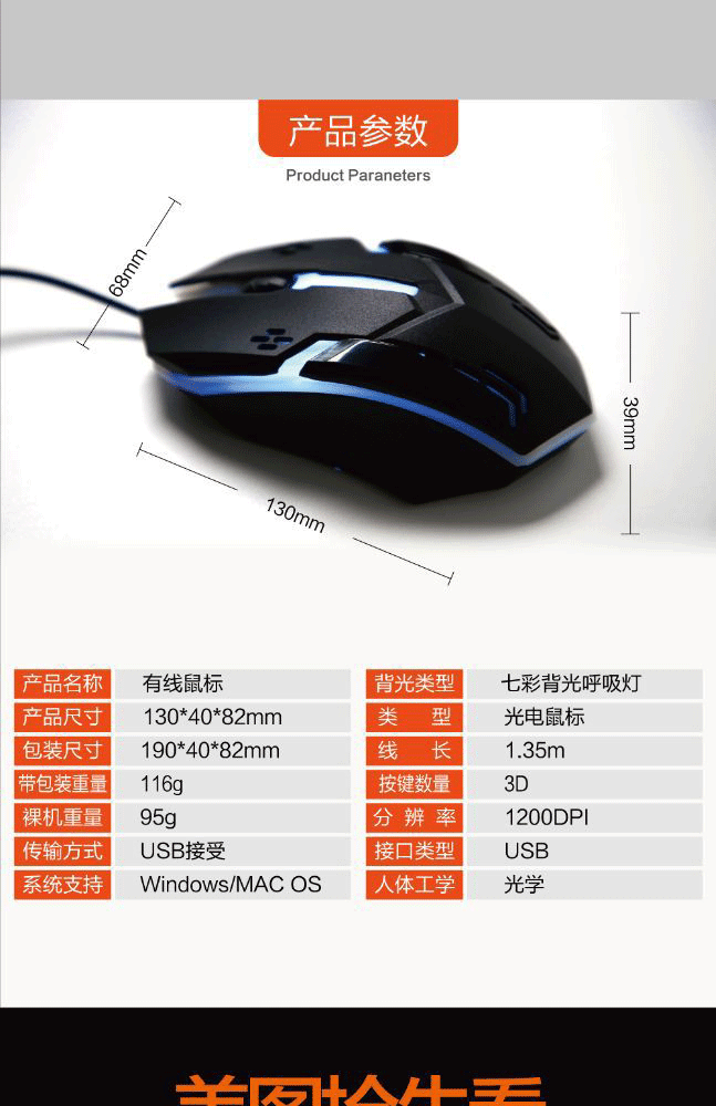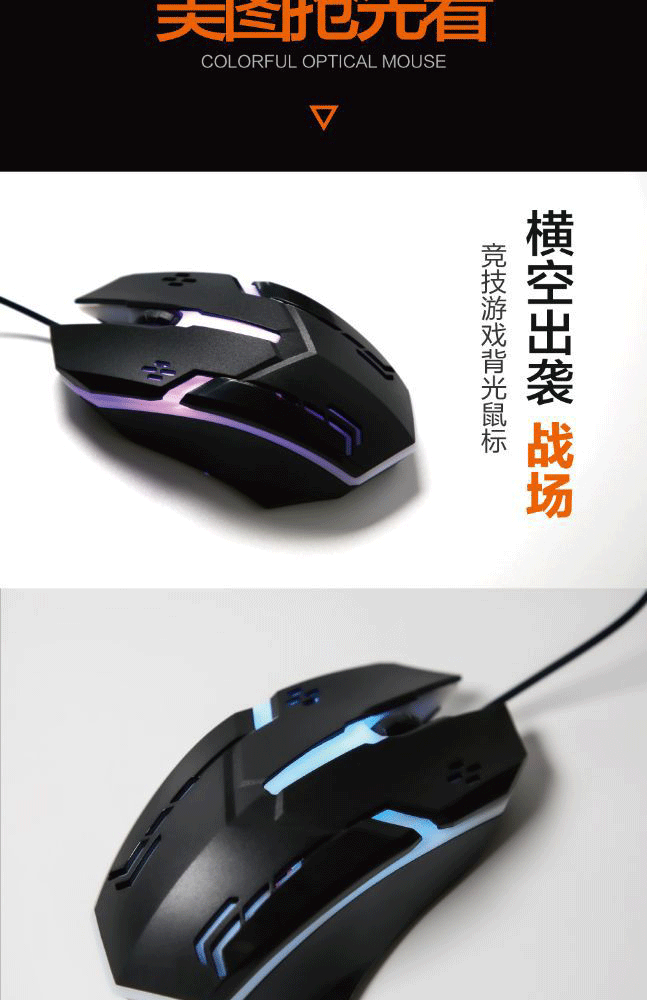 电竞游戏鼠标有线静音外设机械电脑USB滑鼠发光家用办公跨境批发
