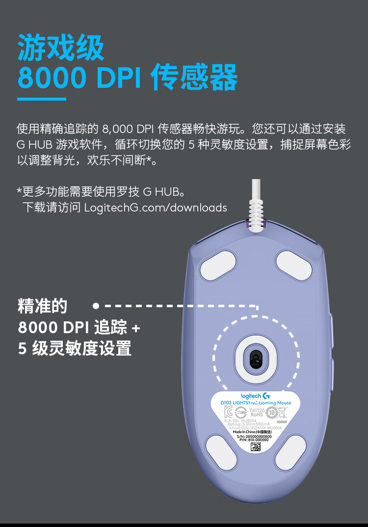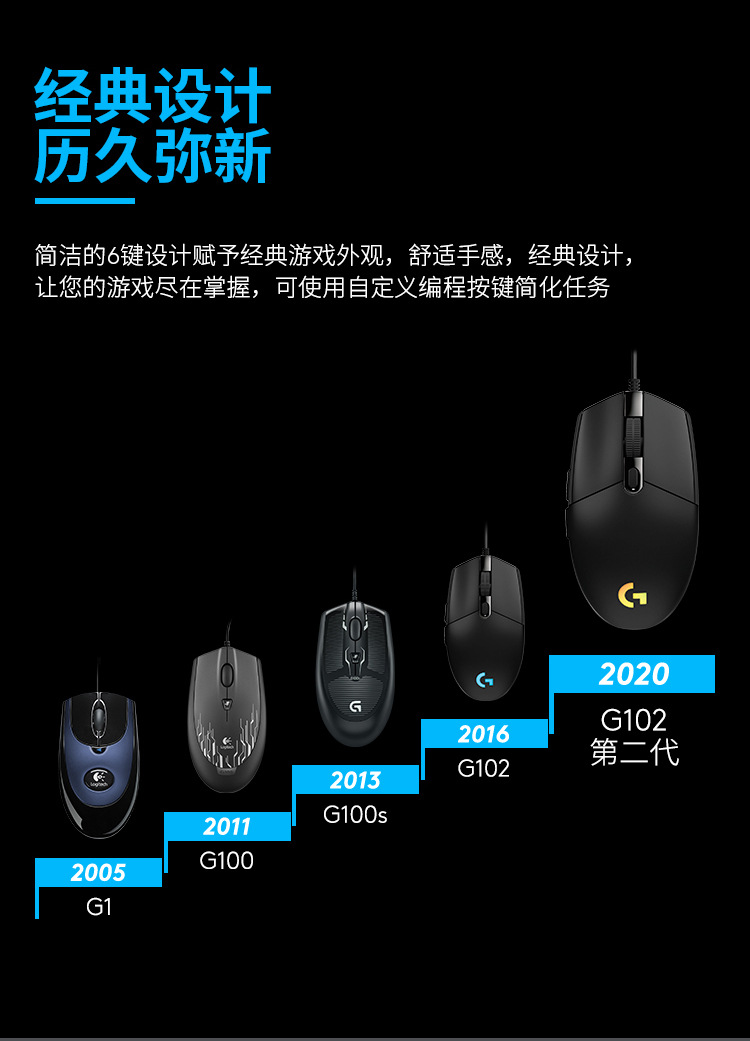罗技(G)G102第二代有线游戏鼠标 RGB流光灯效鼠标 轻量化设计