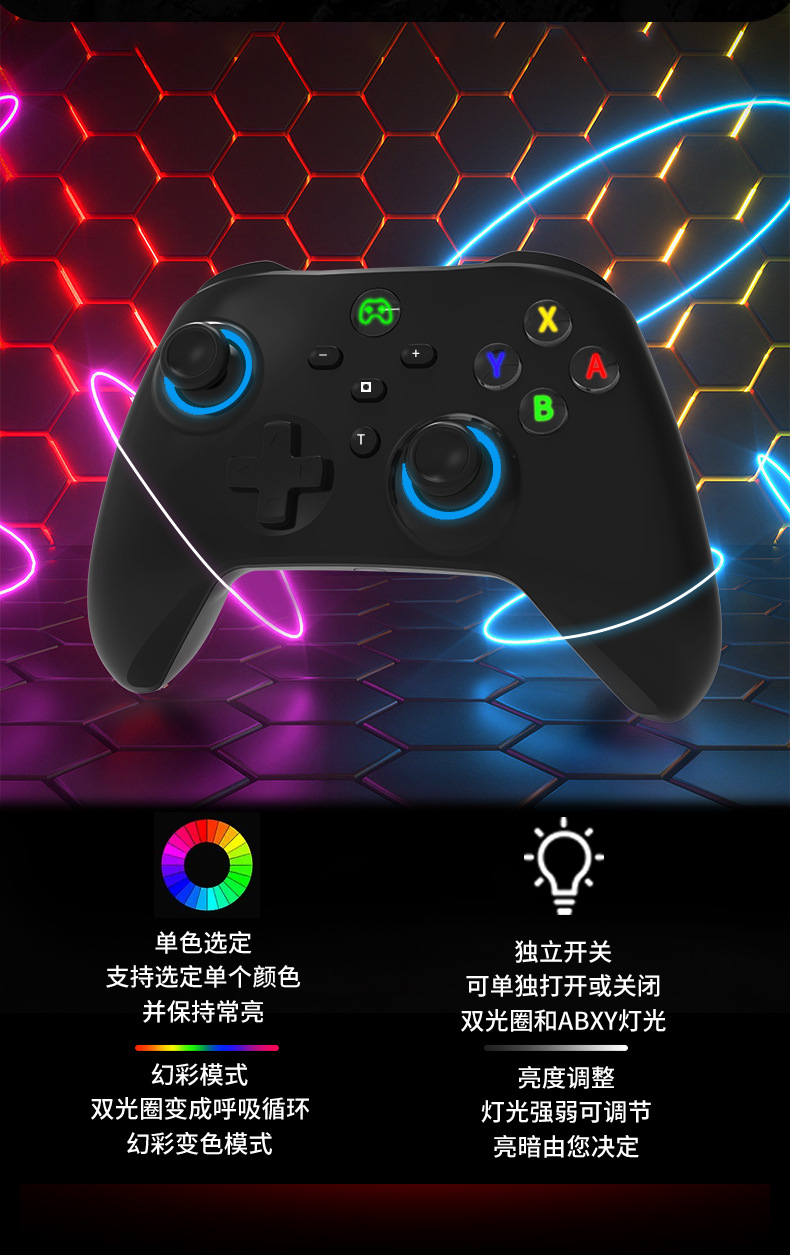 Switch手柄透明RGB炫光蓝牙游戏手柄安卓iso电脑特斯拉比亚迪可用