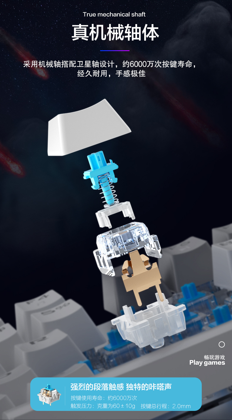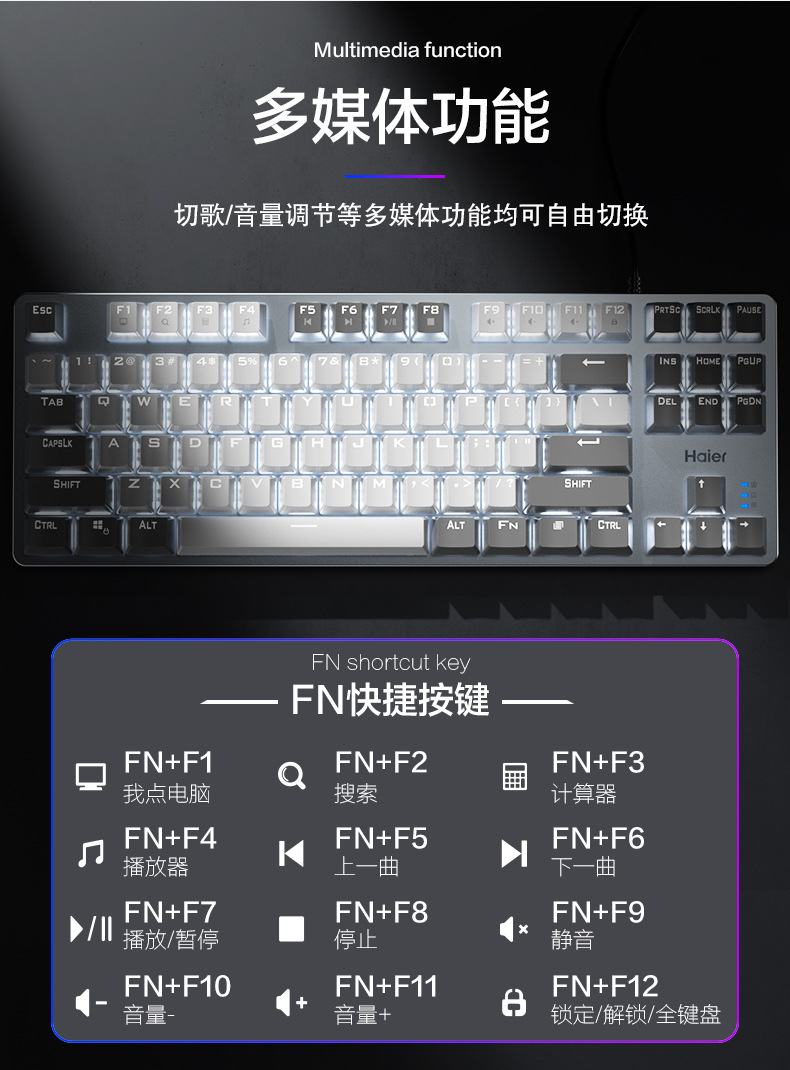 适用海尔电竞真机械金属面板87键6键与N无冲白芯灰芯双拼