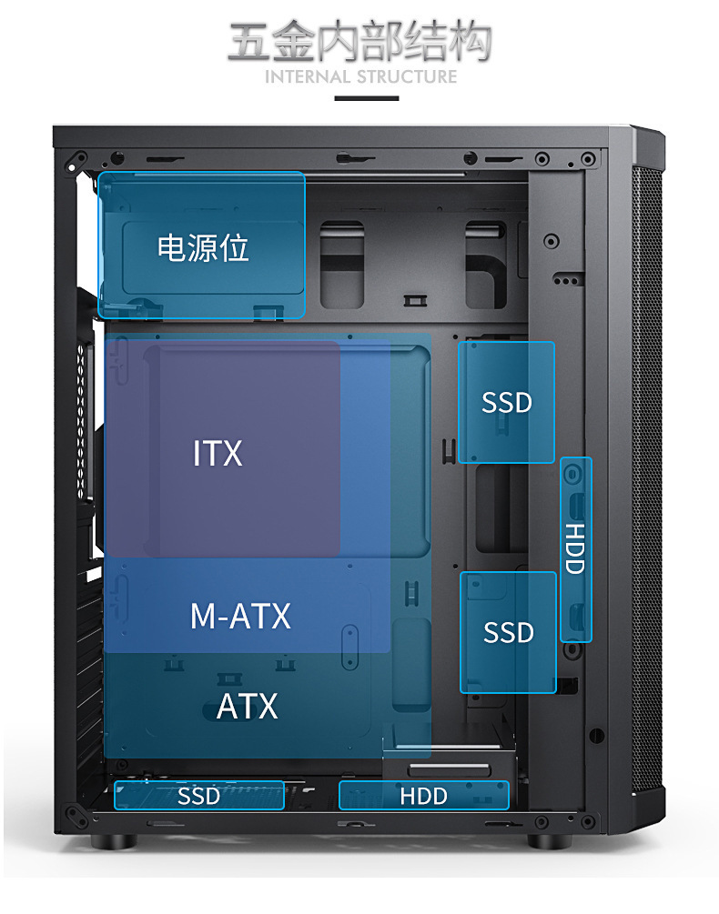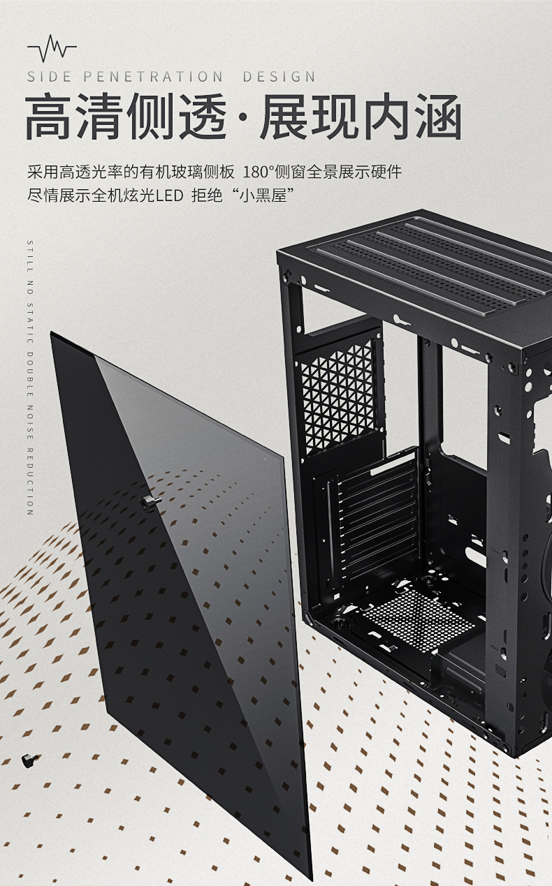 金河田 预见M8 电脑机箱台式机matx主机箱全侧透静音上置电源机箱