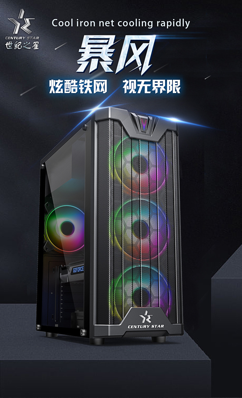 世纪之星暴风电脑3.0侧透电脑主机机箱atx主机水冷海景机箱