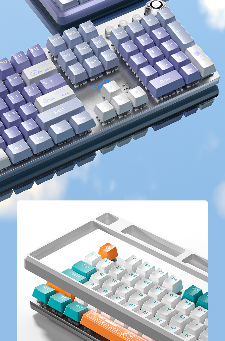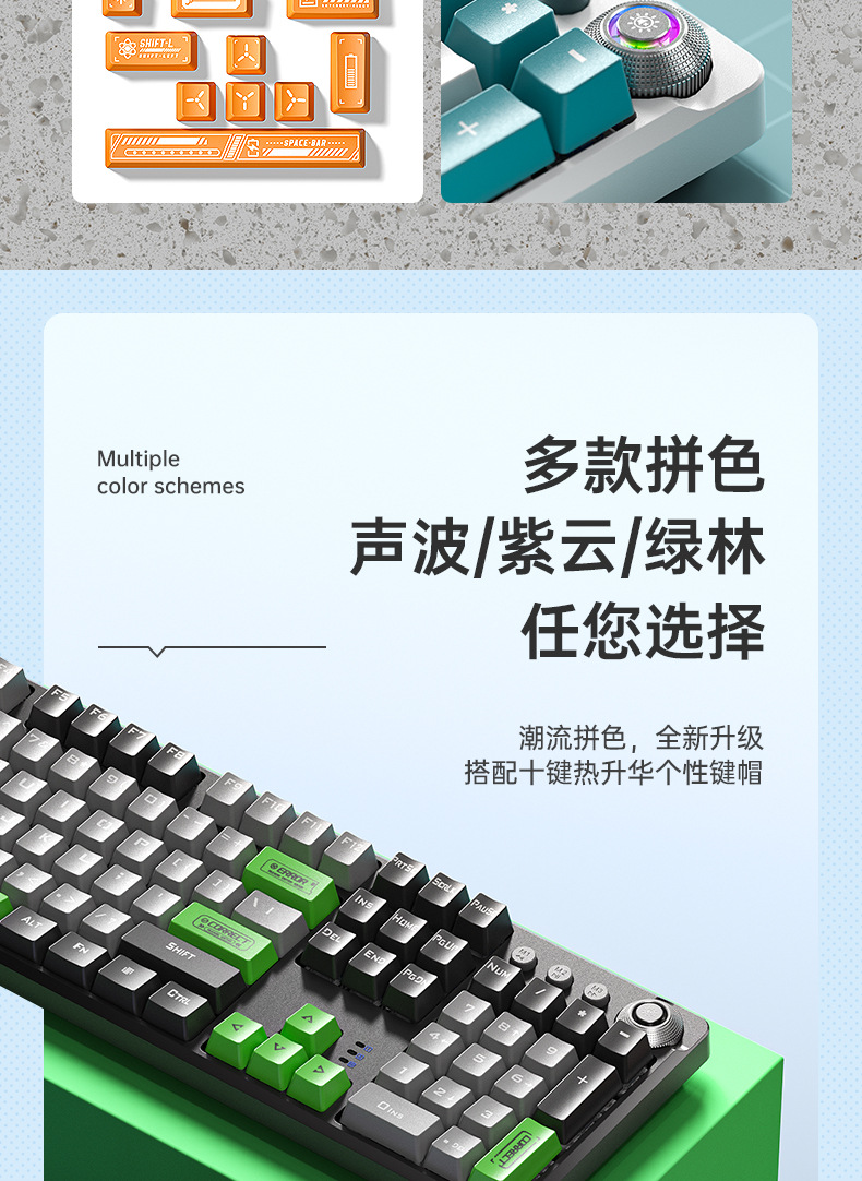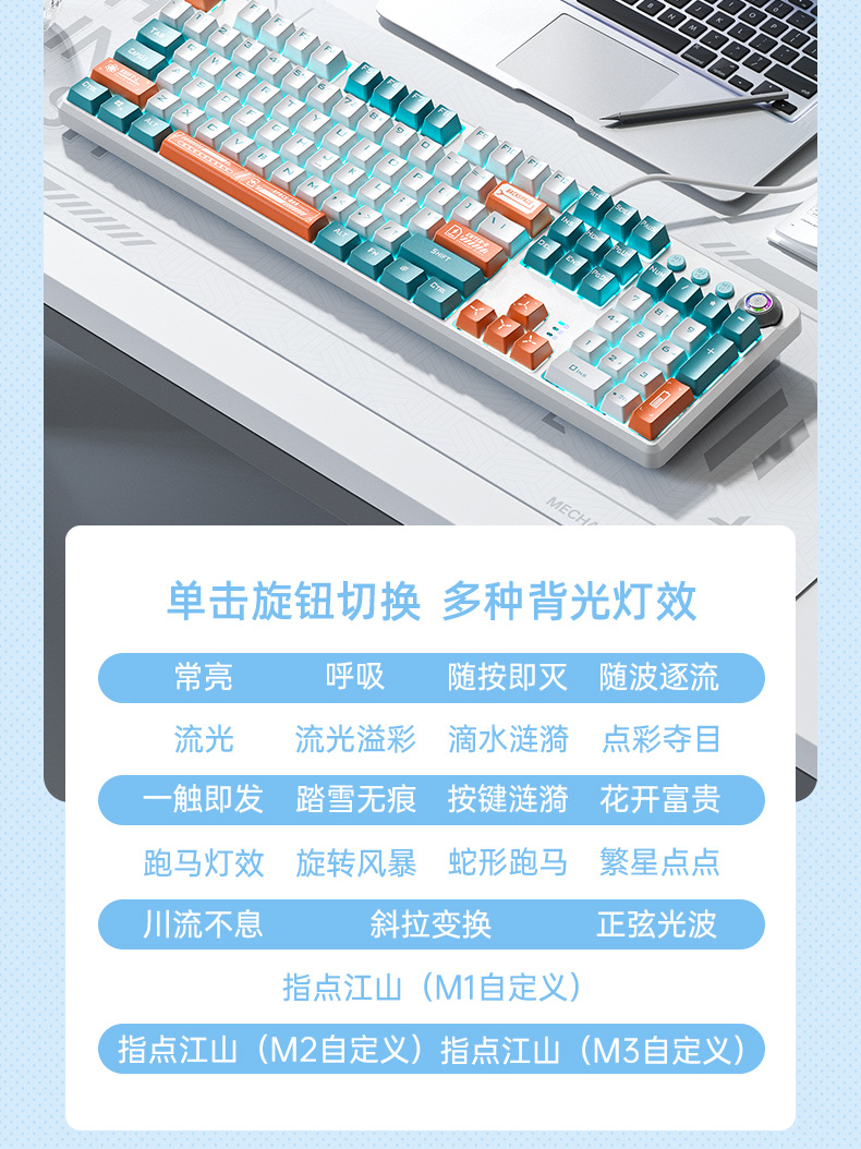 银雕K500游戏有线键盘拼色发光机械手感台式电脑配件跨境私模批发