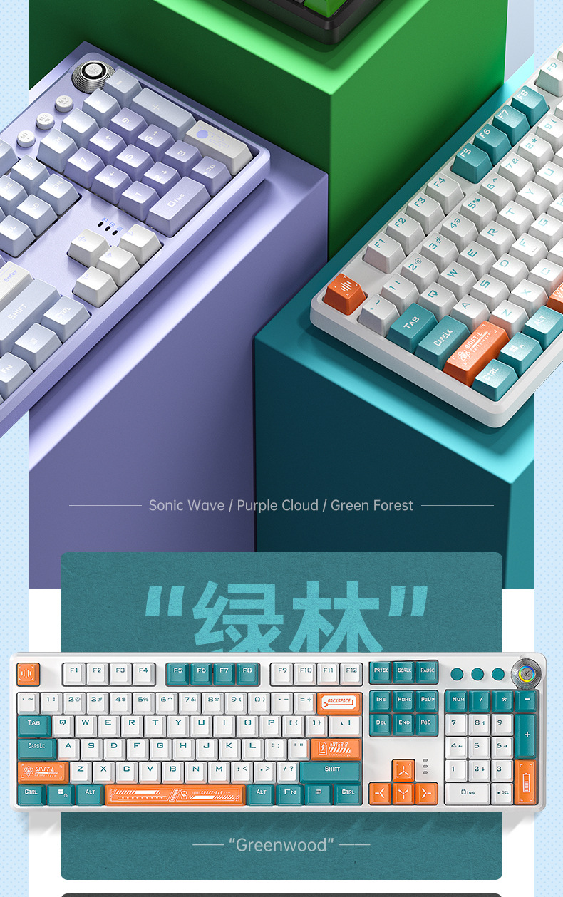狼途LT104键盘客制化蓝牙三模无线机械键盘全键热插拔有线显示屏