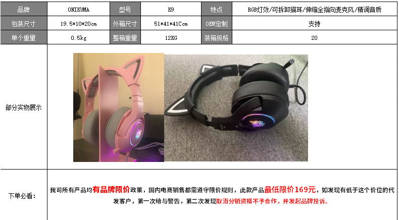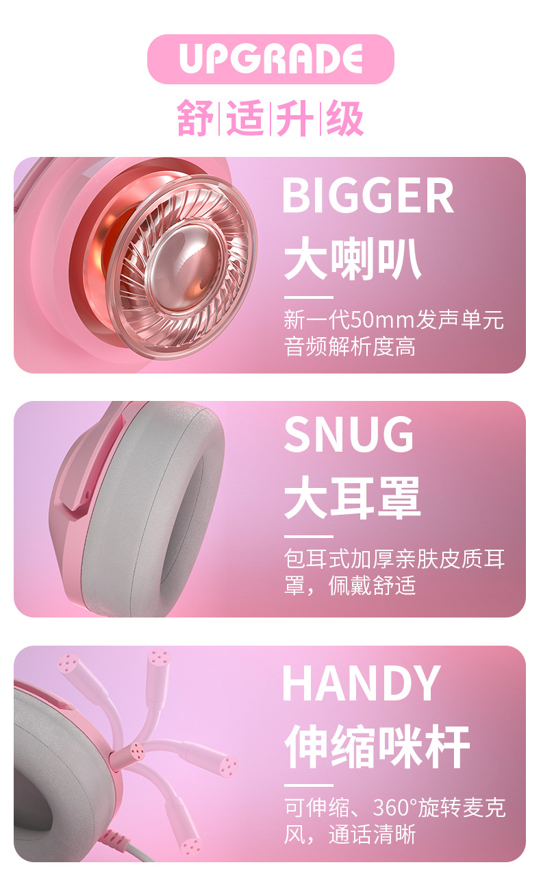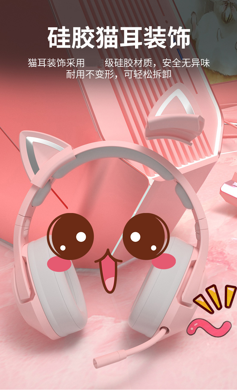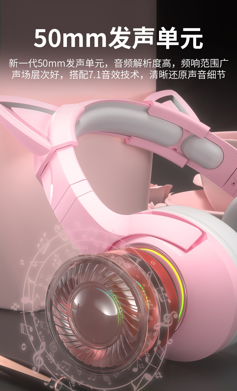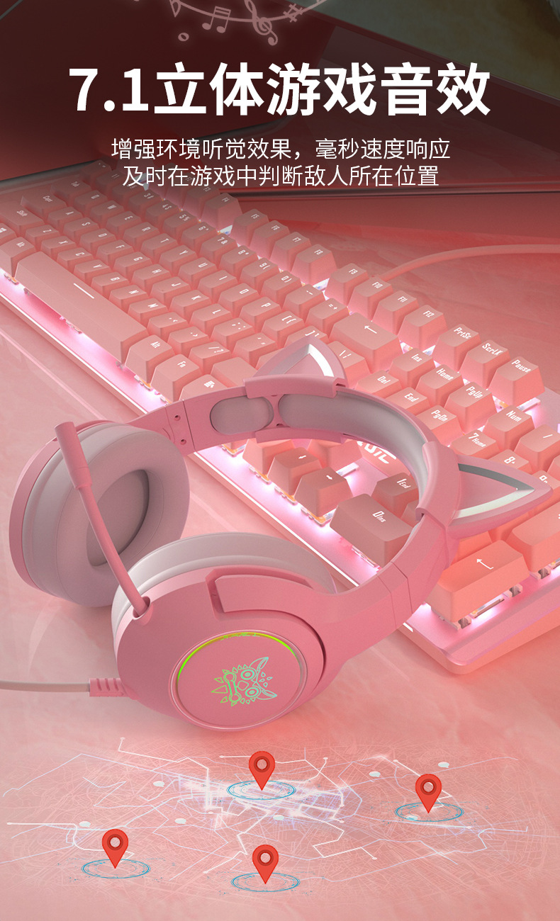 ONIKUMA次元兽 k9耳机头戴式女生粉色猫耳朵游戏电竞耳麦电脑带麦