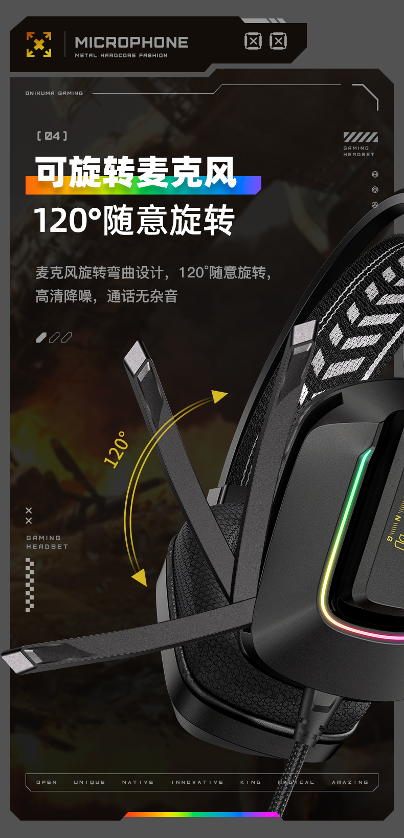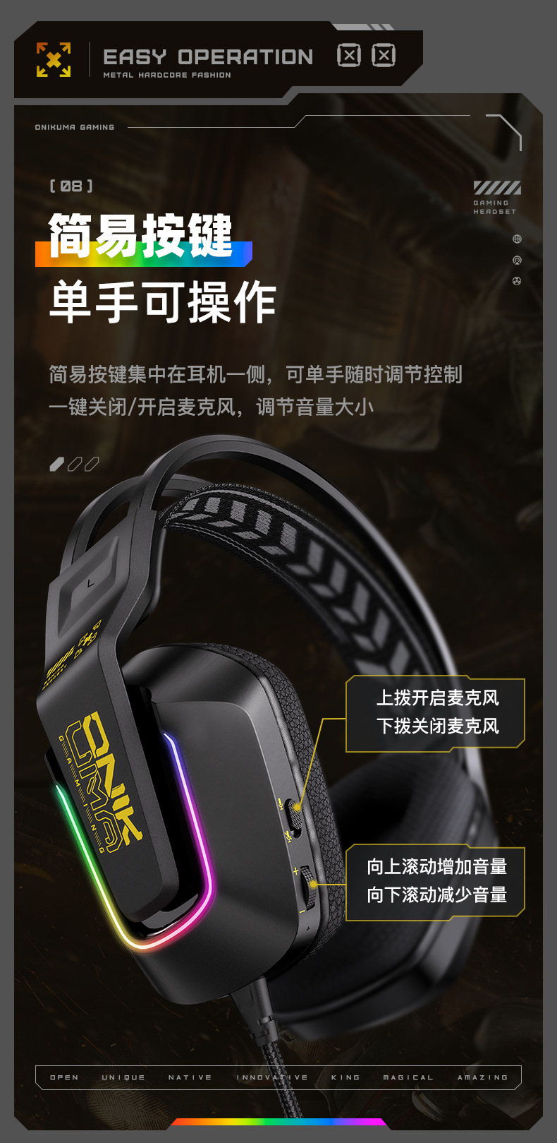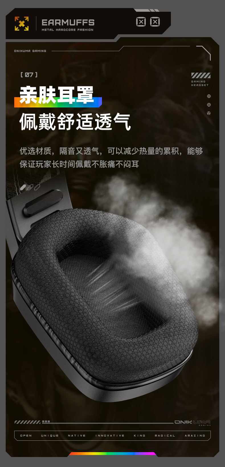 ONIKUMA X20电竞耳机头戴式有线7.1电脑游戏RGB台式笔记本通用