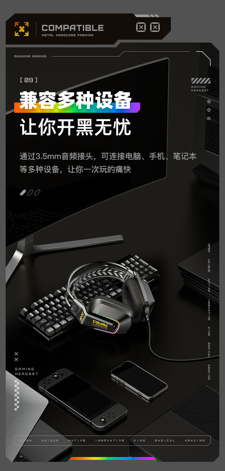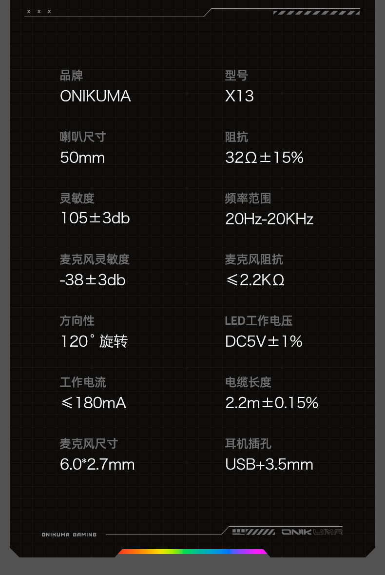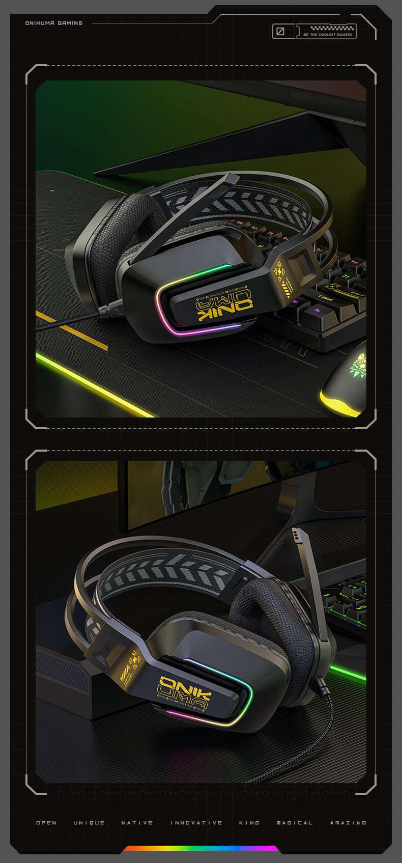 ONIKUMA X20电竞耳机头戴式有线7.1电脑游戏RGB台式笔记本通用