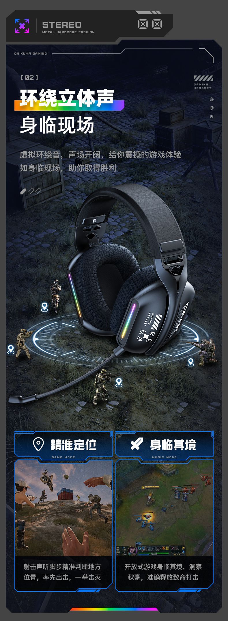 ONIKUMA X12电脑耳机头戴式无线蓝牙有线游戏听声辨位电竞耳麦