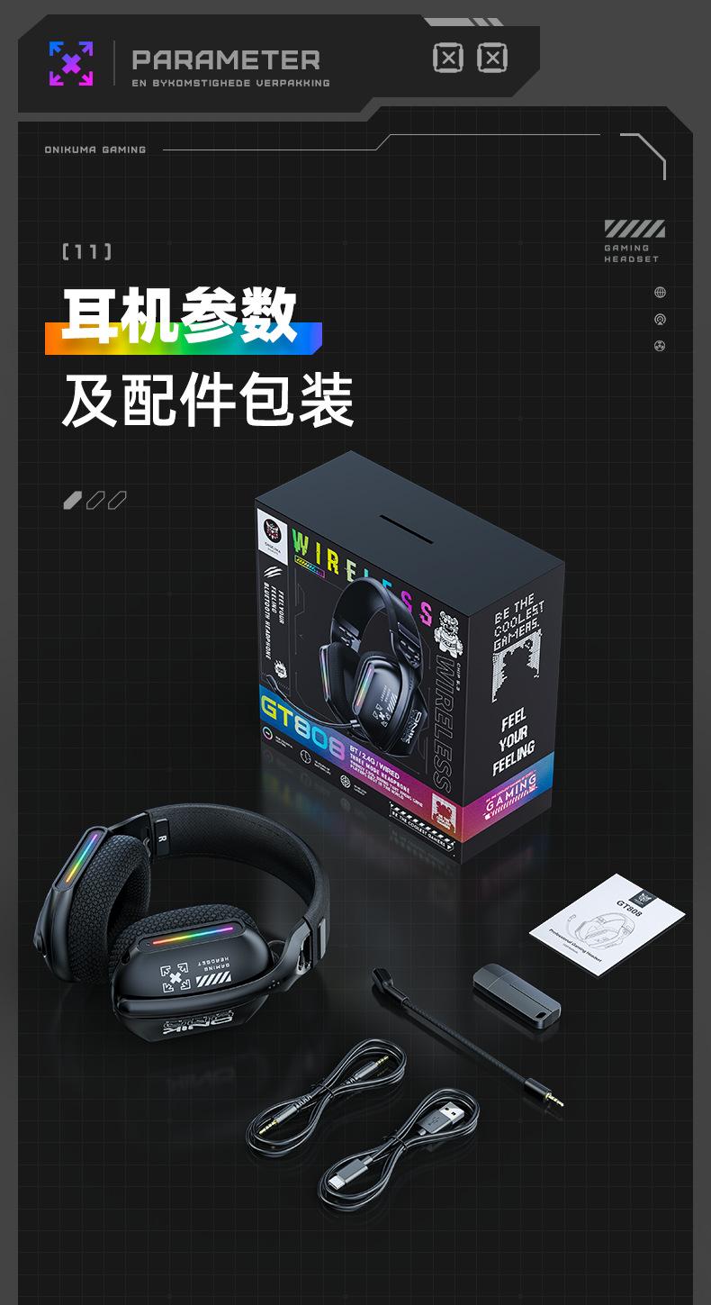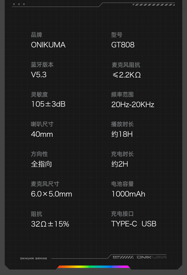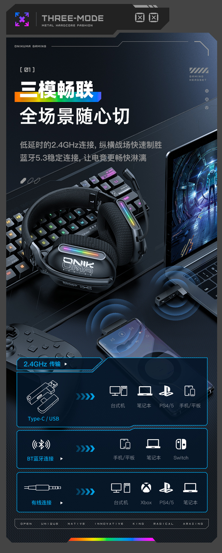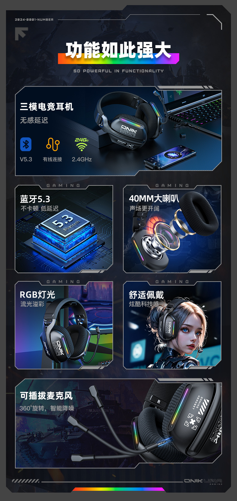 ONIKUMA GT802无线耳机头戴式蓝牙有线三模电竞游戏专用电脑耳麦