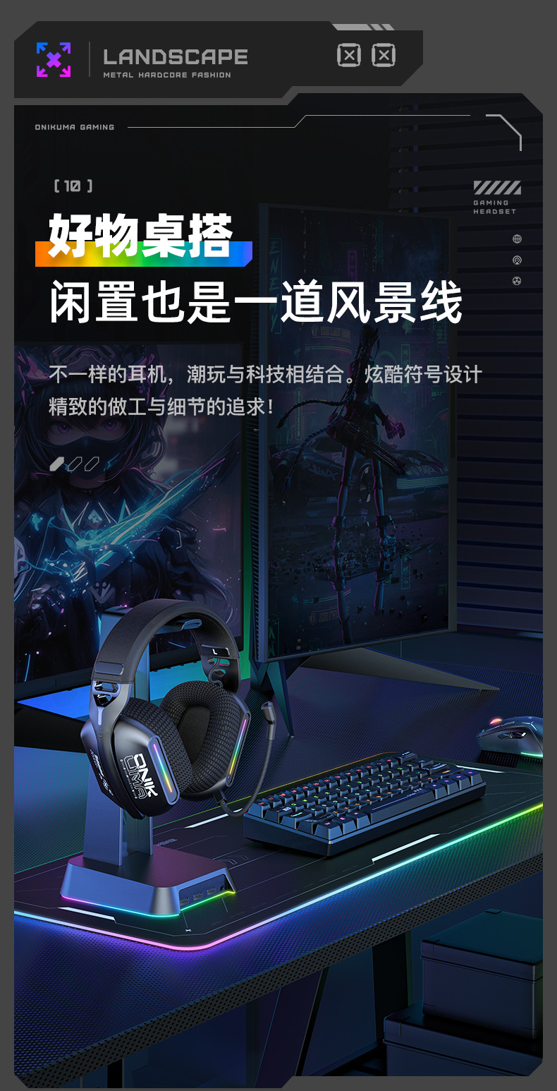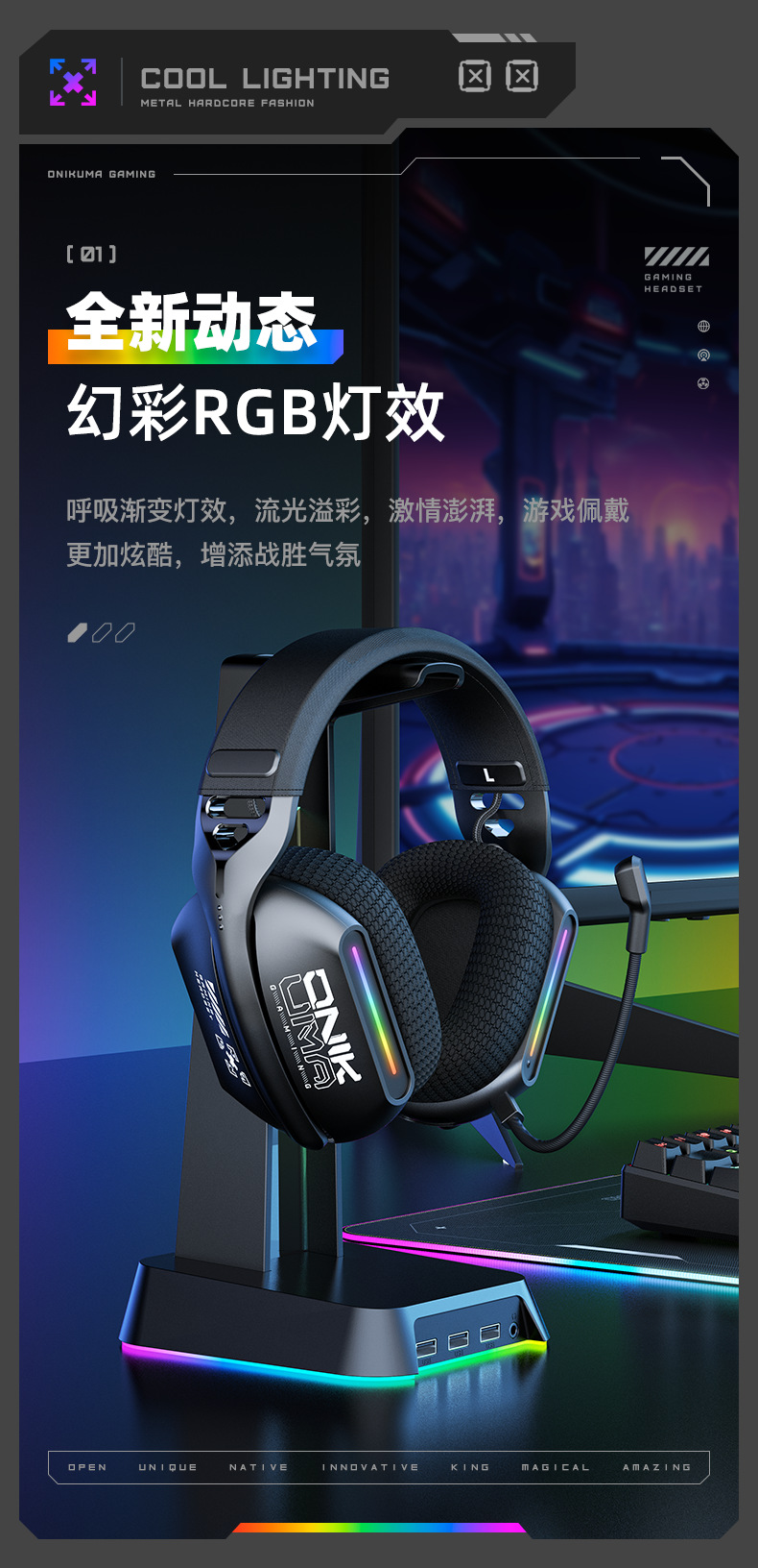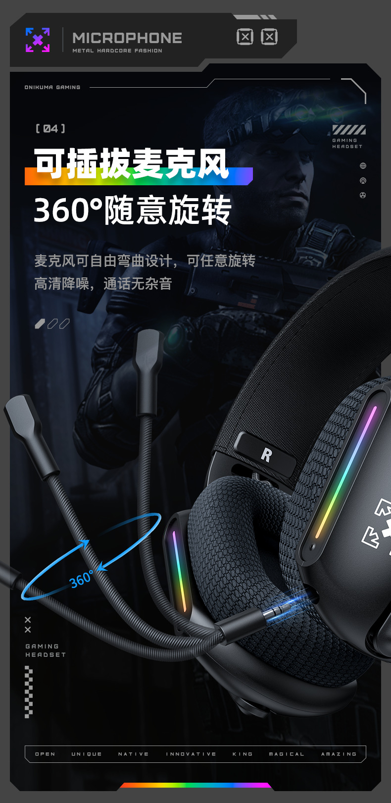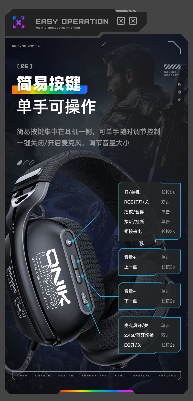 ONIKUMA GT802无线耳机头戴式蓝牙有线三模电竞游戏专用电脑耳麦