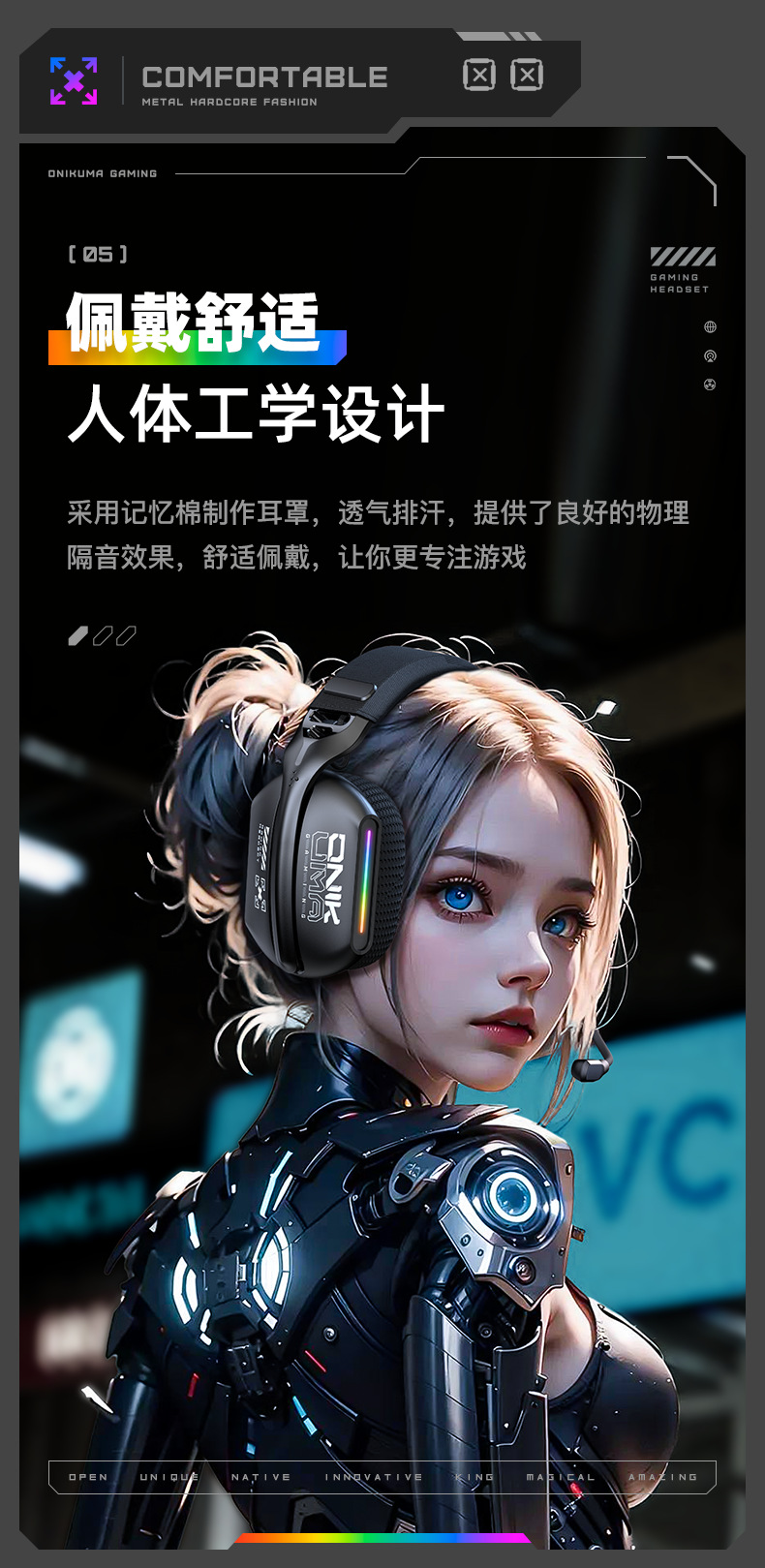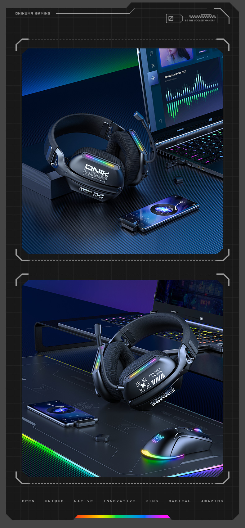 ONIKUMA B60蓝牙耳机头戴式电竞游戏低延迟超长续航降噪通话耳麦