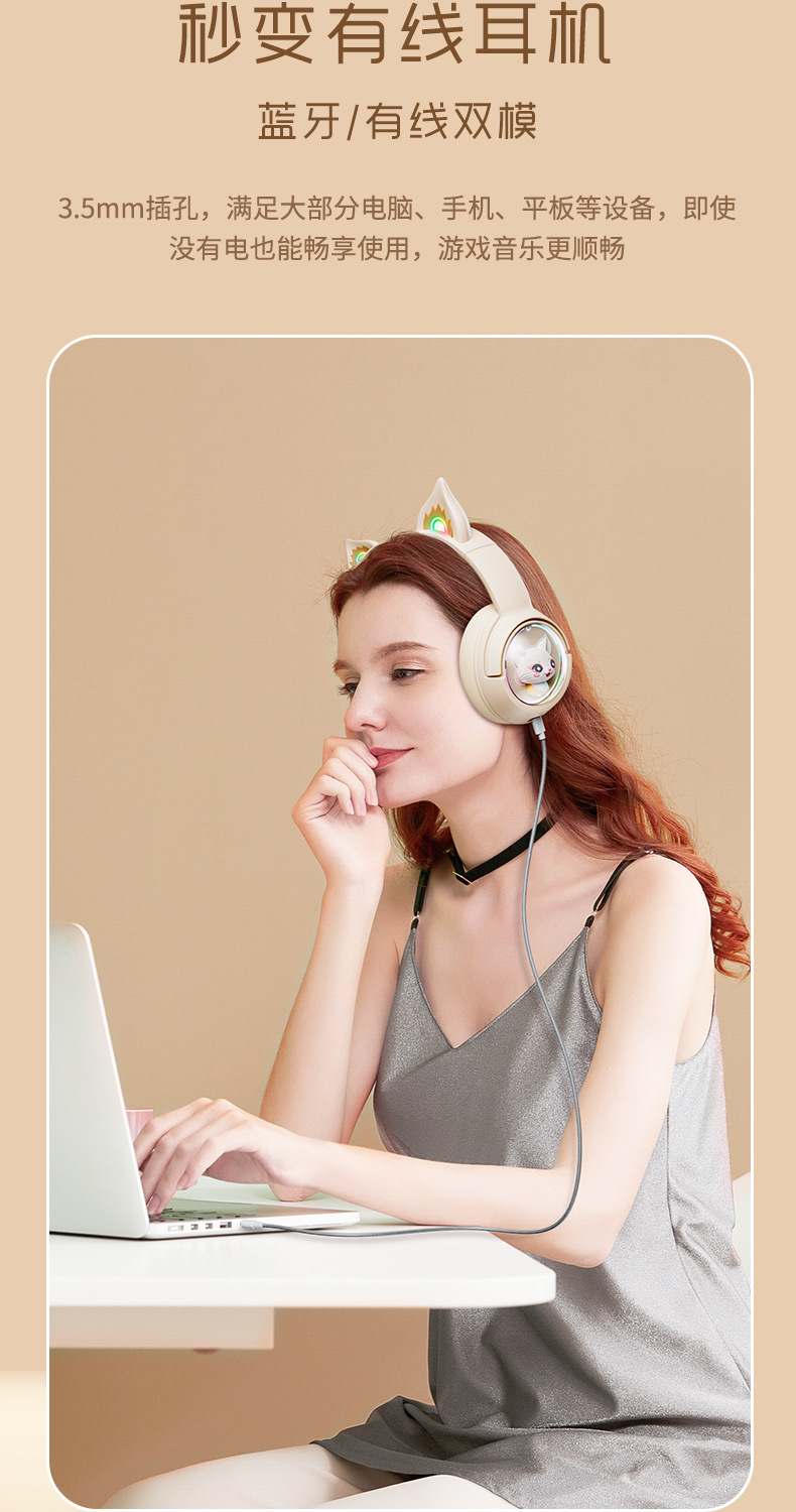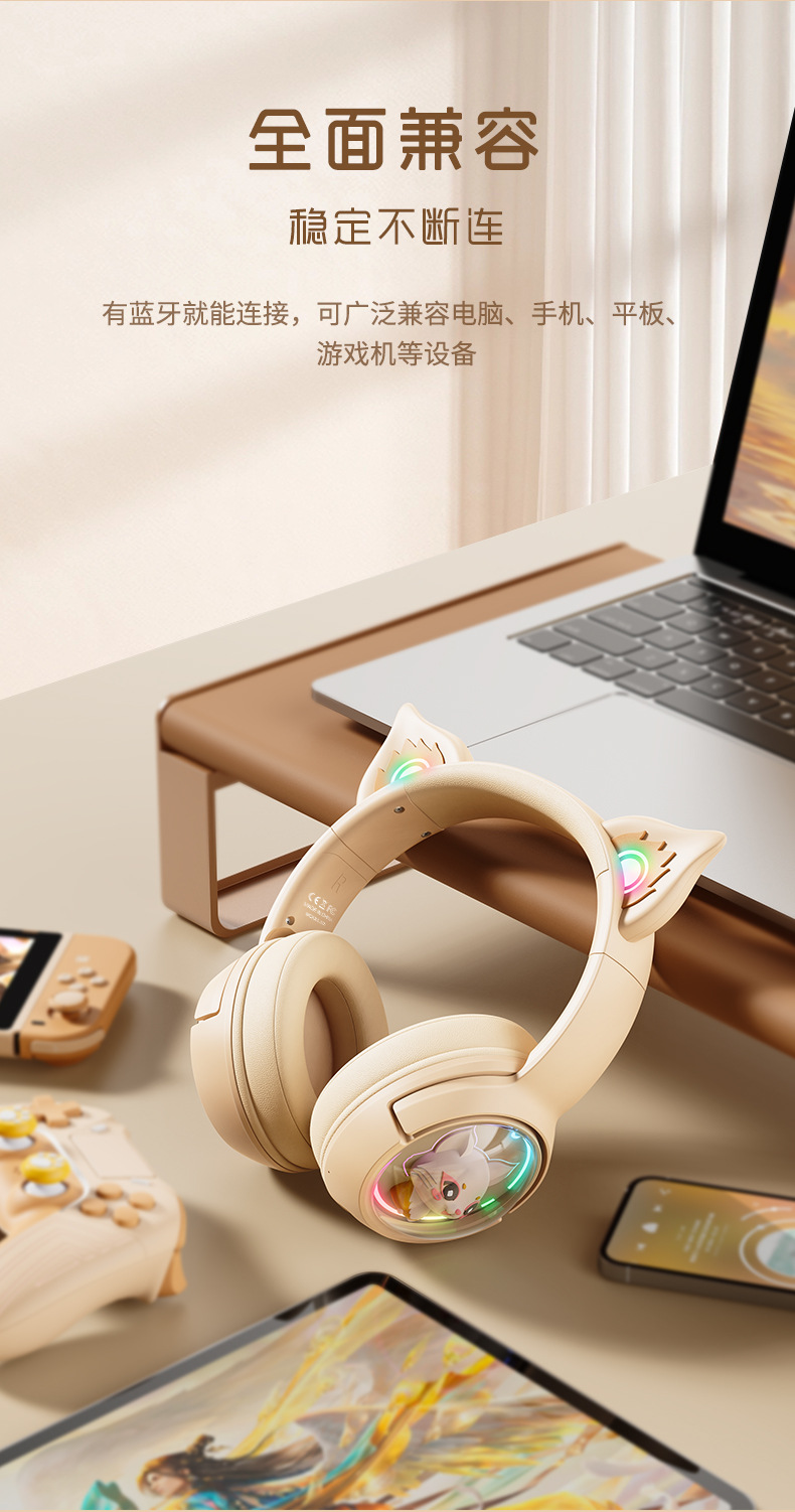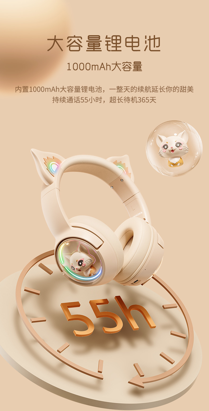 ONIKUMA次元兽 B5头戴式蓝牙耳机无线手机游戏粉色猫耳朵女生耳麦