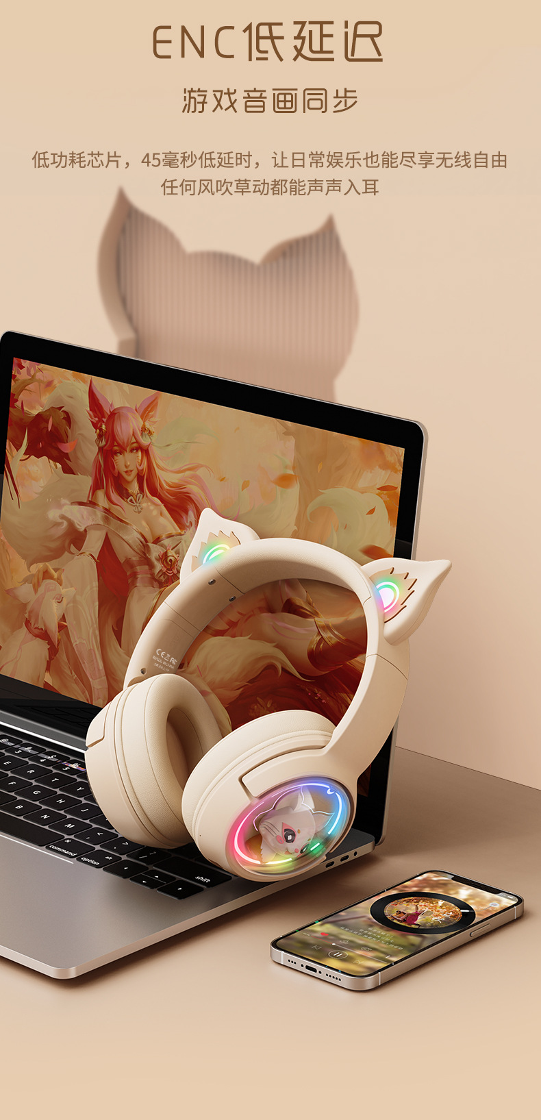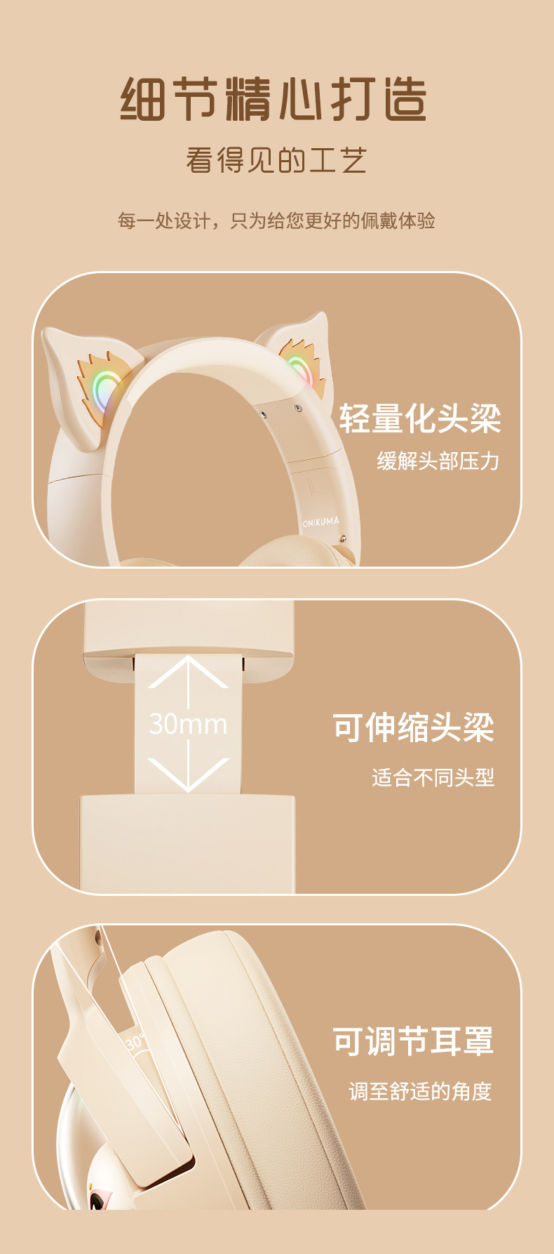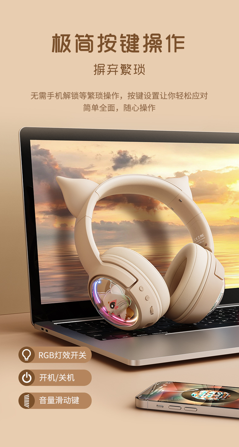 ONIKUMA次元兽 B5头戴式蓝牙耳机无线手机游戏粉色猫耳朵女生耳麦