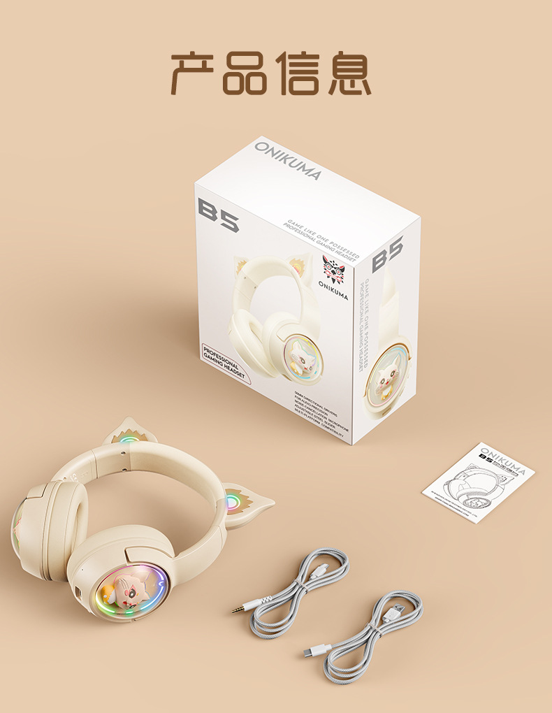 ONIKUMA次元兽 B5蓝牙耳机头戴式无线三模有线游戏电脑手机女生用